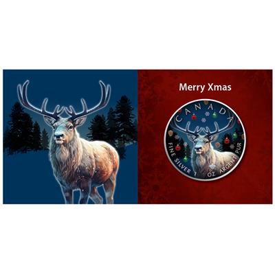 <<< Kanada - 5 CAD Maple Leaf Weihnachten: Merry XMAS - 1 Oz Silber Color | |