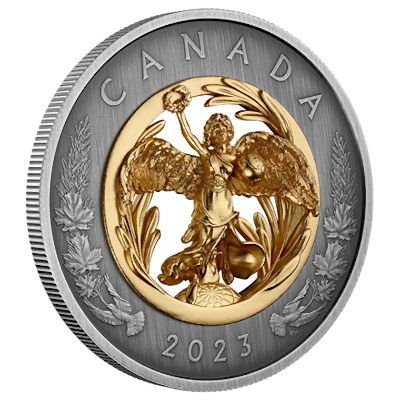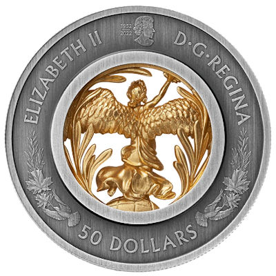<<< Kanada - 50 CAD Allegory of Peace 2023 - Silber Antik Finish Gilded | |