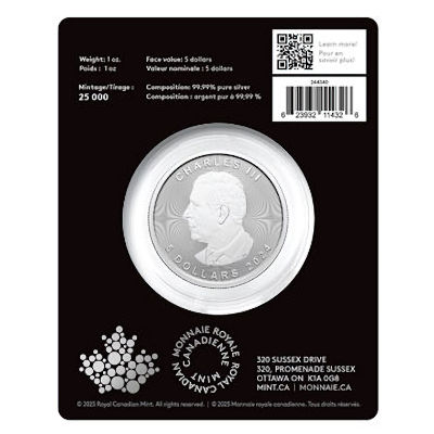 Technische Daten: Ausgabeland: Kanada Prägeanstalt: Royal Canadian Mint Ausgabejahr: 2024 Nennwert: 5 CAD Material: Silber Gewicht: 31,10300g Durchmesser: 38,00 mm Auflage: 25.000 Stück Prägequalität: Stempelglanz Verpackung: Gekapselt im Blister |