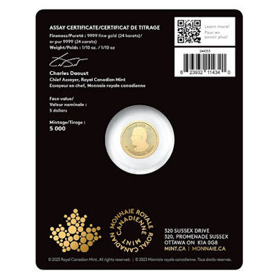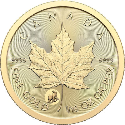 Es handelt sich hier um die 2024er Ausgabe des weltbekannten Maple Leaf in 1/10 Oz Feingold mit den neuesten Sicherheitsmerkmalen der Royal Canadian Mint und dem Zusatz Privy Eisbär.