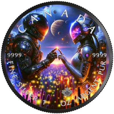 <<< Kanada - 5 CAD Maple Leaf Astronauten (1.) 2023 - 1 Oz Silber Color | |