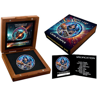<<< Kanada - 5 CAD Maple Leaf Armageddon VII Grim Reaper 2024 - 1 Oz Silber Color | |