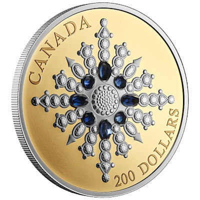 <<< Kanada - 200 CAD Kostbare Kronjuwelen: Saphir Jubiläums Schneeflockenbrosche (1.) - Gold PP Ultra High Relief | |
