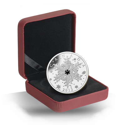Die 2013er Ausgabe der Serie Crystal Snowflakes von der Royal Canadian Mint zeigt eine Winterschneeflocke die mit einem schwarzen Swarovski Kristall in der Mitte der Flocke veredelt ist, der ebenfalls die Form einer Schneeflocke hat. Die Schneeflocke selbst ist sehr filigran gestaltet und von ein paar wenigen deutlich kleineren Flocken umgeben. Der verantworliche Grafiker für die Schneeflocken Seite ist wie auch in den vorangegangene Jahren Konrad Wachelko, daher auch die Initialen KW auf der Motivseite.