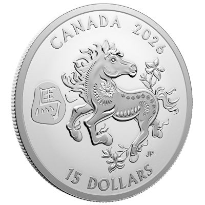 Es handelt sich hier um die Ausgabe zum Jahr des Pferdes (2026) mit einem Nennwert von 15 CAD. Die Münze besteht aus gut 1 Oz Feinsilber in der Reinheit 99,99% sowie der höchsten Prägequalität Polierte Platte und wird im Originaletui der Royal Canadian Mint mit Echtheitszertifikat ausgeliefert. Diese Ausgabe ist auf weltweit 18.888 Stück limitiert.