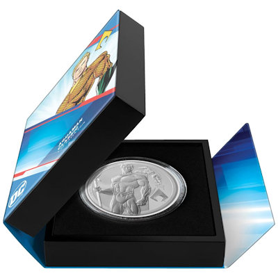 Es handelt sich hier um die 3. Ausgabe aus der DC Comics Classic Superheroes Serie mit dem Motiv von Aquaman. Die Münze besteht aus 1 Oz Feinsilber in der höchsten Prägequalität Polierte Platte und ist auf nur 5.000 Stück weltweit streng limitiert. Die Auslieferung erfolgt im Original-Etui mit Umverpackung und Echtheitszertifikat.