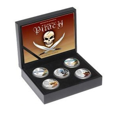 Es handelt sich hier um ein wunderschönes Set mit 5 * 1 Oz Feinsilbermünzen zum Thema Goldenes Zeitalter der Piraten (The Golden Age of Piracy). Die Münzen sind 5 der bekanntesten Piraten gewidmet und wunderschön gestaltet und coloriert.
