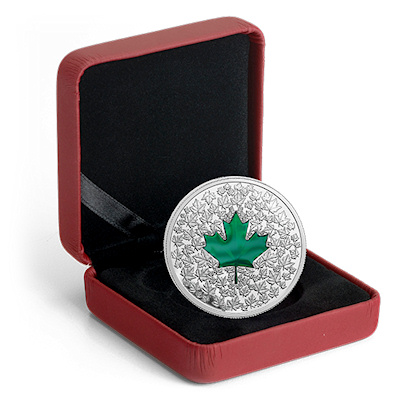 Es handelt sich hier um die 2. Ausgabe colorierter Maple Leaf Münzen von der Royal Canadian Mint.