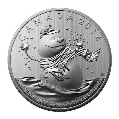 <<< Kanada - 20 CAD $20 for $20 Schneemann 2014 - 1/4 Oz Silber | |