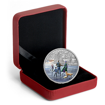 Mit dieser wunderschön colorierten Münze, die eine Szene mit Schlittschuhläufern zeigt, erscheint eine weitere Winter/Weihnachtsausgabe der Royal Canadian Mint.