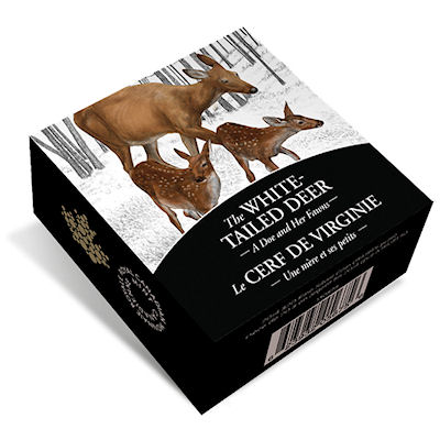 Mit dem Motiv Reh mit Kitzen (A Doe and Her Fawns) erscheint die 4. Ausgabe der 2014 gestarteten Hirsch Serie aus Kanada und zeigt zwei kämpfende Weißwedelhirsche.