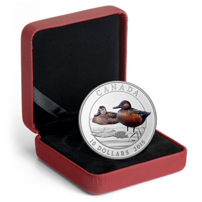 Es handelt sich hier um die fünfte Ausgabe der Entenserie, verausgabt von der Royal Canadian Mint. Das Motiv zeigt die Zimtente(Cinnamon Teal), wunderschön coloriert und in der höchsten Prägequalität Polierte Platte. Die Münze kommt Originalverpackt im Royal Canadian Mint Etui mit Umverpackung und Echtheitszertifikat.