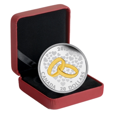 Diese wunderschöne Feinsilbermünze ist ein ideales Hochzeits- oder Hochzeitstaggeschenk. Sie zeigt ein Herz aus vielen kleinen Herzen und in der Mitte sind 2 Eheringe abgebildet die zudem aufwendig und hochkarätig vergoldet wurden. Die Münze kommt selbstverständlich in der höchsten Prägequalität Polierte Platte und wird im Original-Etui mit nummeriertem Echtheitszertifikat verausgabt.