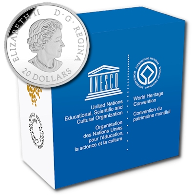 Diese UNESCO Münzausgabe der Royal Canadian Mint in 1 Oz Feinsilber und polierter Platte zeigt zweimal ein Weltkulturerbe, ein kanadisches und eines aus einem anderen Land, die miteinander korrespondieren. Auf dieser Münze ist der Wood Buffalo Park und der Giant Panda Sanctuaries verewigt. Die Auflage beträgt weltweit nur 7.500 Stück und die Auslieferung erfolgt mit Original-Etui mit Echtheitszertifikat.