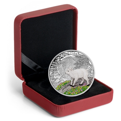Es handelt sich hier um die Ausgabe Bergziege (Mountain Goat) dieser niedlichen Tierserie. Das Motiv zeigt eine kleine Bergziege im Vordergrund, umgeben von bunter Blumenpracht. Im Hintergrund eine erwachsene Berziege und ein Bergpanorama. Der Hintergrund ist in puren Silber in höchster Prägequalität Polierte Platte gehalten, während der Vordergrund aufwendig coloriert ist. Ein schöner Kontrast der das Tierbaby in den Fokus rückt. Die Auslieferung erfolgt im Original-Etui mit Umverpackung und nummeriertem Echtheitszertifikat.