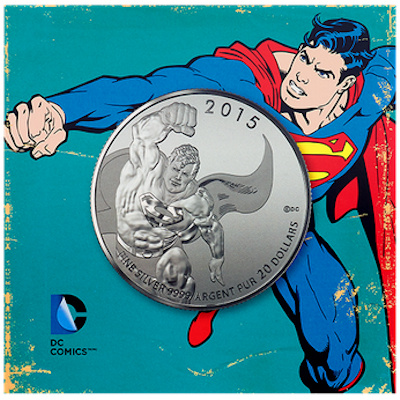 Die bliebte $20 for $20 Serie aus Kanada wird auch 2015 fortgesetzt und in dieser Fortsetzung steckt jede Menge Kraft, das Motiv zeigt den Mann aus Stahl, Superman in seiner bekanntesten Pose. Holen Sie sich diesen Superhelden nach Hause in Ihre Münzsammlung!