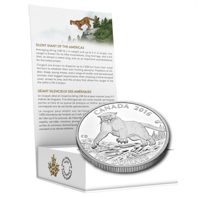 Die 7. Ausgabe dieser 2013 gestarteten Serie zeigt als Motiv einen Puma (Cougar) in Aktion. Die Münze hat einen hohen Nennwert von 100 kanadischen Dollars. Wie die vorangegangenen Ausgaben dürfte auch diese Münze sehr schnell ausverkauft sein. In Kanada werden zum Beispiel auch nur 3 Stück pro Haushalt maximal ausgegeben.