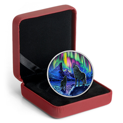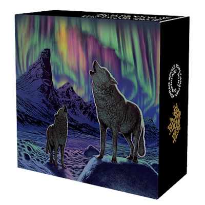 Dies ist die 2. Ausgabe der Glow-In-The-Dark Serie, die Erstausgabe war innerhalb nur eines Tages bei der Royal Canadian Mint komplett ausverkauft. Die zweite Ausgabe zeigt nun zwei Wölfe im Mondschein und im Hintergrund die