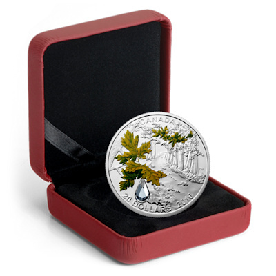 Diese wunderschöne Münzausgabe der Royal Canadian Mint zeigt einen Großblättrigen Ahorn mit dem Juwel des Regens (veredelt durch einen Regentropfen aus einem Swarovski Elements(TM)). Die Auslieferung erfolgt im Original-Etui mit Umverpackung und nummeriertem Echtheitszertifikat. Die Münze besteht aus 1 Oz Feinsilber in der höchsten Prägequalität Polierte Platte und ist auf nur 4.500 Stück streng limitiert.