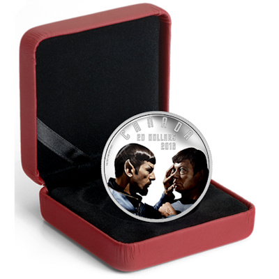 Anlässlich 50 Jahre Star Trek Fernsehserie verausgabt die Royal Canadian Mint diverse Münzausgaben und Serien. Den Anfang macht eine $20 for $20 Münze mit der Enterprise, eine 4-teilige Serie in 1/2 Oz Feinsilber mit den Stars der Serie: