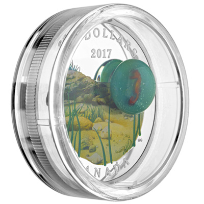 In dieser 3-teiligen Serie präsentiert die Royal Canadian Mint Motive unter dem Meer. Die Besonderheit, die Münzen aus 1 Oz Feinsilber in der hohen Qualität 99,99% sind mit einer Applikation aus bunten Mosaik Glas versehen, hergestellt in Mühevoller Handarbeit. Die Serie umfaßt die Ausgaben: