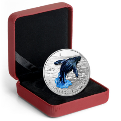 WOW! Mit dieser Neuausgabe zeigt die Royal Candian Mint ihr wahres Können in der Prägetechnologie. Das Motiv zeigt einen 3-Dimensionalen Buckelwal der aus dem Meer springt. Die Münze besteht aus 1 Oz Feinsilber in der höchsten Prägequalität Polierte Platte und ist auf nur 7.500 Stück streng limitiert. Die Auslieferung erfolgt im Original-Etui mit Umverpackung und nummeriertem Echtheitszertifikat.