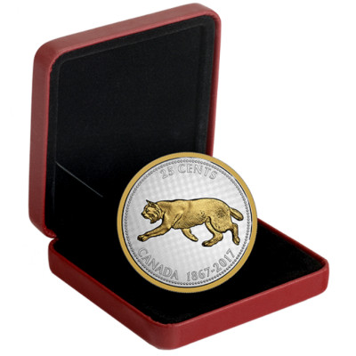 <<< Kanada - 25 Cent Big Coin Puma 2017 - 5 Oz Silber Gilded | |