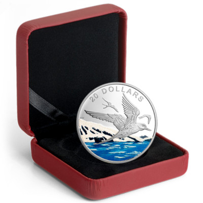 Diese wunderschöne arktische Seeschwalben Ausgabe der Royal Canadian Mint ist mit Diamantsplitter versehen, um dem Wasser einen funkelnden Effekt zu geben. Erstmalig wurde diese Technik bei der Royal Canadian Mint mit der Ausgabe Eisbär eingesetzt. Die Münze besteht aus 1 Oz Feinsilber in der höchsten Prägequalität Polierte Platte und ist auf nur 7.500 Stück streng limitiert. Die Auslieferung erfolgt im Original-Etui mit Umverpackung und nummeriertem Echtheitszertifikat.