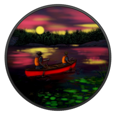 Es handelt sich hier um die 2. Ausgabe und zeigt ein wunderschönes Motiv einer Kanu-Fahrt bei Sonnenuntergang. Die Münze verfügt über die besondere Glow-in-the-Dark Technologie!