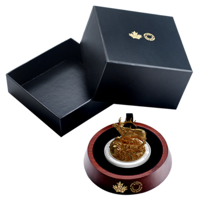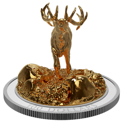 Diese besondere Prägung der Royal Canadian Mint zeigt eine Skulptur Münze mit dem Motiv des Rothirsch. Es handelt sich um die 3. Ausgabe dieser beeindruckenden Skulpturen. Die Silbermünze wiegt rund 315g, also 10 Oz Feinsilber in der hohen Reinheit 99,99%. Die Münze ist in der höchsten Prägequalität Polierte Platte gefertigt, die Skulptur des Rothirsch ist zudem aufwendig und hochkarätig vergoldet. Die Ausgabe ist auf nur 1.200 Stück weltweit streng limitiert. Die Auslieferung erfolgt im edlen Original-Etui mit Umverpackung und nummeriertem Echtheitszertifikat.