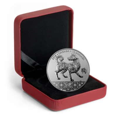 Es handelt sich hier um die Lunar Silbermünzen Ausgabe zum Jahr des Hundes (2018) mit einem Nennwert von 10 CAD. Auch die 2018er Ausgabe ist wunderschön detailreich und fantasievoll gestaltet und fügt sich perfekt in die kanadische Lunar Serie ein. Die Münze besteht aus gut 1/2 Oz Feinsilber in der hohen Reinheit 99,99% und wird im Originaletui der Royal Canadian Mint mit nummeriertem Echtheitszertifikat ausgeliefert. Diese Ausgabe ist auf weltweit 15.888 Stück limitiert.