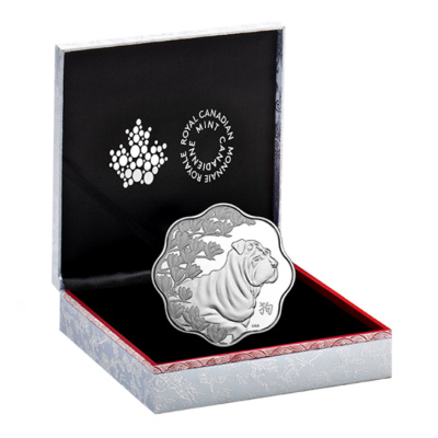 Es handelt sich hier um die Ausgabe zum Jahr des Hundes (2018) mit einem Nennwert von 15 CAD in der Variante Lotus. Die Münze besteht aus Feinsilber in der Reinheit 99,99% sowie der höchsten Prägequalität Polierte Platte und wird im Originaletui der Royal Canadian Mint mit nummeriertem Echtheitszertifikat ausgeliefert. Diese Ausgabe ist auf weltweit 18.888 Stück limitiert.