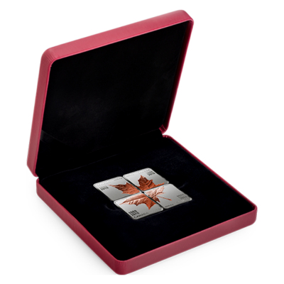 Zum Jubiläum von 30 Jahre Anlagemünze Maple Leaf 1988-2018 verausgabt die Royal Canadian Mint diese besondere Maple Leaf Ausgabe, bestehend aus 4 Münzen die sich zu einem großen Ahornblatt zusammenlegen lassen. Die Münze besteht aus 99,99er Feinsilber in der Prägequalität Reverse Proof, sind mit Rose Gold veredelt und weltweit auf nur 6.500 Stück streng limitiert. Die Auslieferung erfolgt im Original-Etui mit Umverpackung und nummeriertem Echtheitszertifikat.