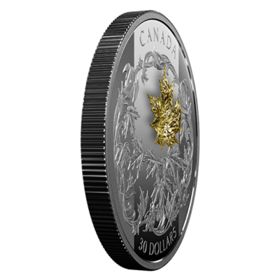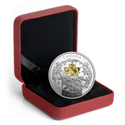 Zum 30. Jubiläum der Maple Leaf Anlagemünze (1988-2018) verausgabt die Royal Canadian Mint diese besondere Ausgabe, bei der die 2 Oz schwere Feinsilbermünze zudem mit einem 1 Gramm schweren puren Goldmaple besetzt ist. Die Münze besteht aus 99,99er Feinsilber in der höchsten Prägequalität Polierte Platte und ist auf nur 2.750 Stück weltweit streng limitiert. Die Auslieferung erfolgt im Original-Etui mit Umverpackung und nummeriertem Echtheitszertifikat.