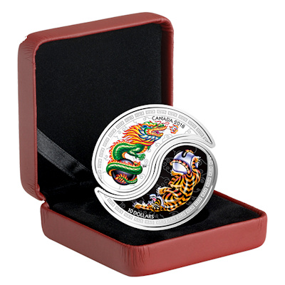 Diese wunderschöne Münzausgabe, ganz im mystischen Zeichen des anstehenden Neujahrsfests in China zeigt den Tiger und Drachen im Yin & Yang vereinigt. Jede Münze besteht aus 1/2 Oz Feinsilber in der höchsten Reinheit 99,99% und ergibt somit zusammen 1 Oz Pures Silber. Die Münze sind in der höchsten Prägequalität Polierte Platte geprägt, aufwendig coloriert und auf nur 6.000 Stück weltweit streng limitiert. Die Auslieferung erfolgt im Original-Etui mit Umverpackung und nummeriertem Echtheitszertifikat.