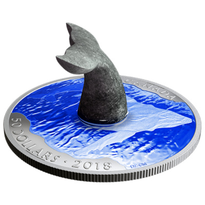 | <<< Kanada - 50 CAD Walflosse Skulpturmünze 2018 - 5 Oz Silber | |