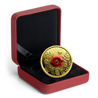 Der Anblick von Mohnblumen, die in den Schlachtfeldern von Flandern wuchsen, inspirierte einen Kanadier zu einer zukünftigen Hymne der Erinnerung, die die blutrote Blume für immer als ein Erinnerungsemblem für Krieg, Frieden, Dienst und vor allem Opfer verewigte. Kanadas Blume der Erinnerung blüht symbolisch jeden November, am Jahrestag des Waffenstillstands, wenn Kanadier den Mohn mit feierlichem Stolz tragen. Aber die Blume wird für immer in voller Blüte auf diesem höchst kunstfertigen Prunkstück sein, dessen wirbelnde Anordnung uns an den Mahlstrom des Ersten Weltkriegs und die unzähligen Opfer erinnert, die den Weg für den Frieden geebnet haben. Die Münze besteht aus 1 Oz Feingold in der höchsten Prägequalität Polierte Platte, ist teilcoloriert und ist auf nur 350 Stück streng limitiert. Die Auslieferung erfolgt im Original-Etui mit Umverpackung und nummeriertem Echtheitszertifikat.