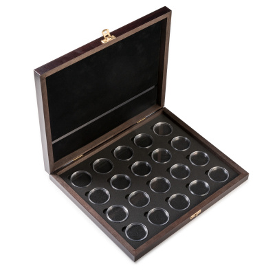 Es handelt sich hier um eine edle Sammlerbox zur 1 Oz Feinsilbermünze Maple Leaf der von Kanada ausgegeben und von der Royal Canadian Mint geprägt wird. Die Sammlerbox beinhaltet Platz für 20 Ausgaben dieser Serie in der Größe 1 Oz Feinsilber und präsentiert so Ihre edle Sammlung in entsprechend edlem Rahmen. Der Box liegen ebenfalls 20 passende Münzkapseln bei!