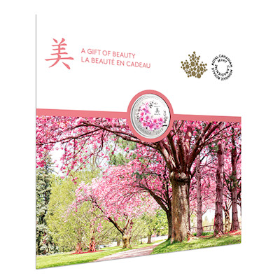 Eine zeitlose Schönheit, die das ganze Jahr über in Ihrer Sammlung blüht! Ein blühender Kirschbaum ist eine der reichsten Blumenpräsentationen der Natur, mit zarten Blütenbüscheln, die einen beeindruckenden Baldachin aus Rosa und Weiß bilden! Durch die Kombination von Farbe und Gravur sind die rosafarbenen Blumen auf dem Motiv der Münze für immer in voller Blüte und können das ganze Jahr über betrachtet werden - insbesondere wenn sie in einer Blisterverpackung erscheinen, die sich leicht in einen Aufsteller verwandeln lässt.