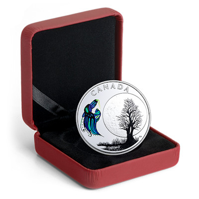 Großmutter Mond ist immer bereit, ihre liebevollen Weisheiten zu teilen, und diese faszinierende Münzserie bringt Ihnen ihre Lebenslehren mit 13 originellen Designs nach Hause. Kanadas Ureinwohner betrachten jeden Aspekt der Natur als eine lebendige Beziehung, die eine aktive Rolle in ihrem Leben spielt. Die Ausgaben bestehen jeweils aus 99,99%igem Feinsilber, sind in der höchsten Prägequalität Polierte Platte produziert und zudem aufwendig coloriert. Die Auflage pro Ausgabe beträgt nur 4.000 Stück weltweit, der Nennwert 3 Kanadische Dollar (CAD) und damit ist jede Münz offizielles Zahlungsmittel in Kanada.
