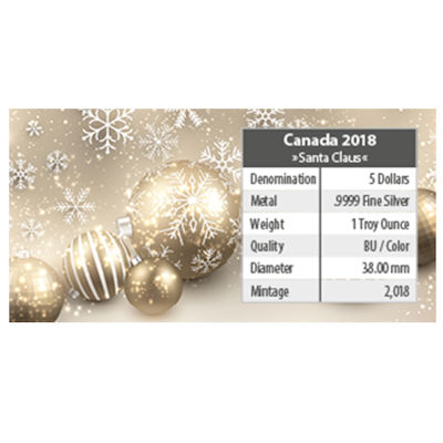 <<< Kanada - 5 CAD Maple Leaf Weihnachtsmann 2018 - 1 Oz Silber Color | |