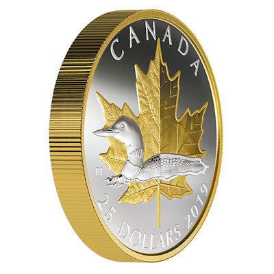 Der Eistaucher (Loon) gehört zu der für Kanada typischen Tierwelt. Mit diesem kanadischen Symbol verausgabt die Royal Canadian Mint diese 1 Oz schwere Feinsilbermünze mit einem Nennwert von 25 Kanadischen Dollars (CAD) und in der höchsten Prägequalität Polierte Platte in Piedfort Prägung. Die Münze ist weltweit auf nur 7.000 Stück limitiert und kommt im Original-Etui mit Echtheitszertifikat und Umverpackung. Besonderheit, die Münze ist beidseitig sowie am geriffelten Rand aufwendig 24-Karat vergoldet.