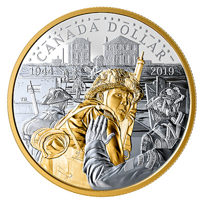 Der D-Day, also die Landung der Alliierten in der Normandie jährt sich dieses Jahr zum 75. mal. Anlässlich dieses Jubiläums verausgabt die Royal Canadian Mint diese wunderschön detailreich gestaltete Feinsilbermünze als den 2019er Kanadischen Proof-Dollar in höchster Prägequalität Polierte Platte. Die Münze ist auf weltweit nur 20.000 Stück streng limitiert und kommt im Original-Etui mit Umverpackung und nummeriertem Echtheitszertifikat. Anlässlich dieses Jubiläums verausgabt die Royal Canadian Mint diese wunderschön detailreich gestaltete Feinsilbermünzen-Set in höchster Prägequalität Polierte Platte und teilweise hochwertig vergoldet. Dieses Set ist auf weltweit nur 15.000 Stück streng limitiert und kommt im Original-Sammler-Etui mit Umverpackung und nummeriertem Echtheitszertifikat. Das Set beinhaltet insgesamt 7 Feinsilbermünzen in den Nennwerten Proof-Dollar, 1 Dollar, 2 Dollar, 50 Cent, 25 Cent, 10 Cent und 5 Cent. Alle Münzen sind aus Feinsilber der höchsten Reinheit 999,9% und in der höchsten Prägequalität Polierte Platte geprägt.