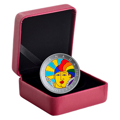 Halten Sie an der Liebe fest, mit einer colorierten, reinen Silberversion des 2019-Gedenkdollars, der an den 50. Jahrestag der Entkriminalisierung der Homosexualität in Kanada erinnert.