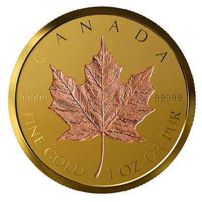 Der kanadische Maple Leaf wird hier auf dieser ganz besonderen Goldmünze in der extrem hohen Reinheit von 99999er Feingold von der Royal Canadian Mint präsentiert. Die Münze besteht aus 1 Oz Feingold in der Prägequalität Reverse Proof und ist auf nur 350 Stück weltweit streng limitiert. Die Auslieferung erfolgt im Original-Etui mit Umverpackung und nummeriertem Echtheitszertifikat. Anlass ist das 40. Jubiläum des Maple Leaf, daher ist das Ahornblatt zusätzlich mit Rosegold veredelt.