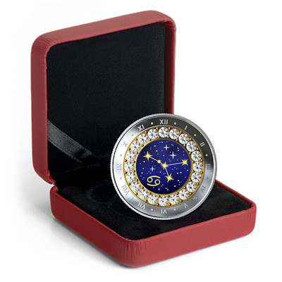 In dieser 12-teiligen Serie verausgabt die Royal Canadian Mint monatlich eine Ausgabe mit dem jeweiligen Sternzeichen, wunderschön in Szene gesetzt durch Colorierung und mit einem Kranz aus Swarovski® Elements Kristallen umringt. Die Münzen werden in der höchsten Prägequalität Polierte Platte gefertigt und sind auf nur 4.000 Stück weltweit streng limitiert. Die Auslieferung erfolgt im Original-Etui mit Umverpackung und nummeriertem Echtheitszertifikat. Die Münze eignet sich besonders gut auch als Geschenk zu Geburtstagen.
