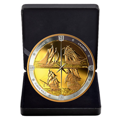 Auf dieser großen und beeindruckenden 1/2 Kilo schweren Feinsilbermünze sehen Sie die Großsegler Kanadas, geprägt in Polierter Platte auf reinstem 9999er Feinsilber und zudem aufwendig vergoldet. Nur 500 Stück dieser gigantischen Münze werden die Prägestätte der Royal Canadian Mint verlassen und in die Sammlung begeistertet Münzfans wandern. Die Auslieferung erfolgt im Original-Etui mit Umverpackung und nummeriertem Echtheitszertifikat.