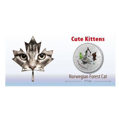 Diese colorierte Maple Leaf Ausgabe aus 2017 zeigt die Norwegische Waldkatze.