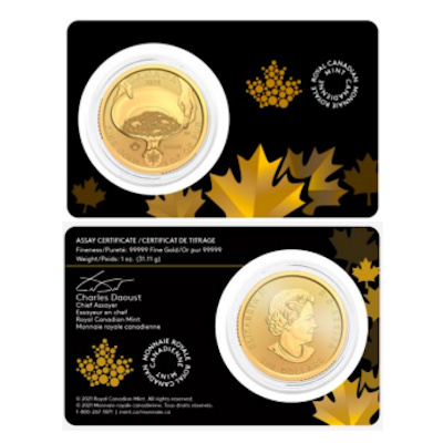 Technische Daten: Ausgabeland: Kanada Prägeanstalt: Royal Canadian Mint Ausgabejahr: 2021 Nennwert: 200 CAD Dollar Material: Gold Gewicht: 31,10300g Durchmesser: 30 mm Prägequalität: Stempelglanz, Bullion Verpackung: Im Original-Blister |