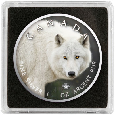 <<< Kanada - 5 CAD Maple Leaf Wildlife Polarwolf 2021 - 1 Oz Silber Color | |